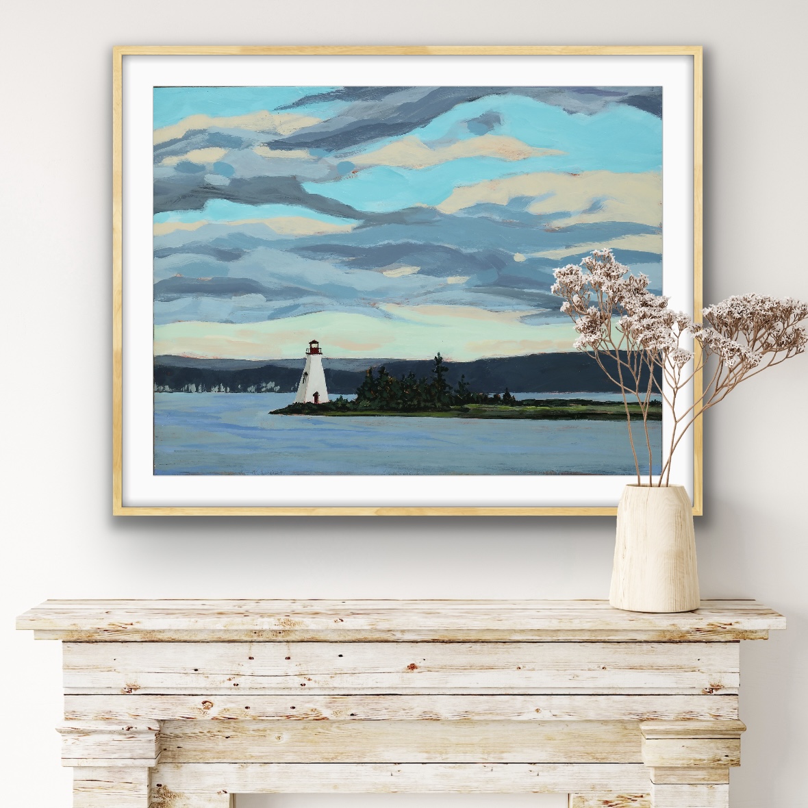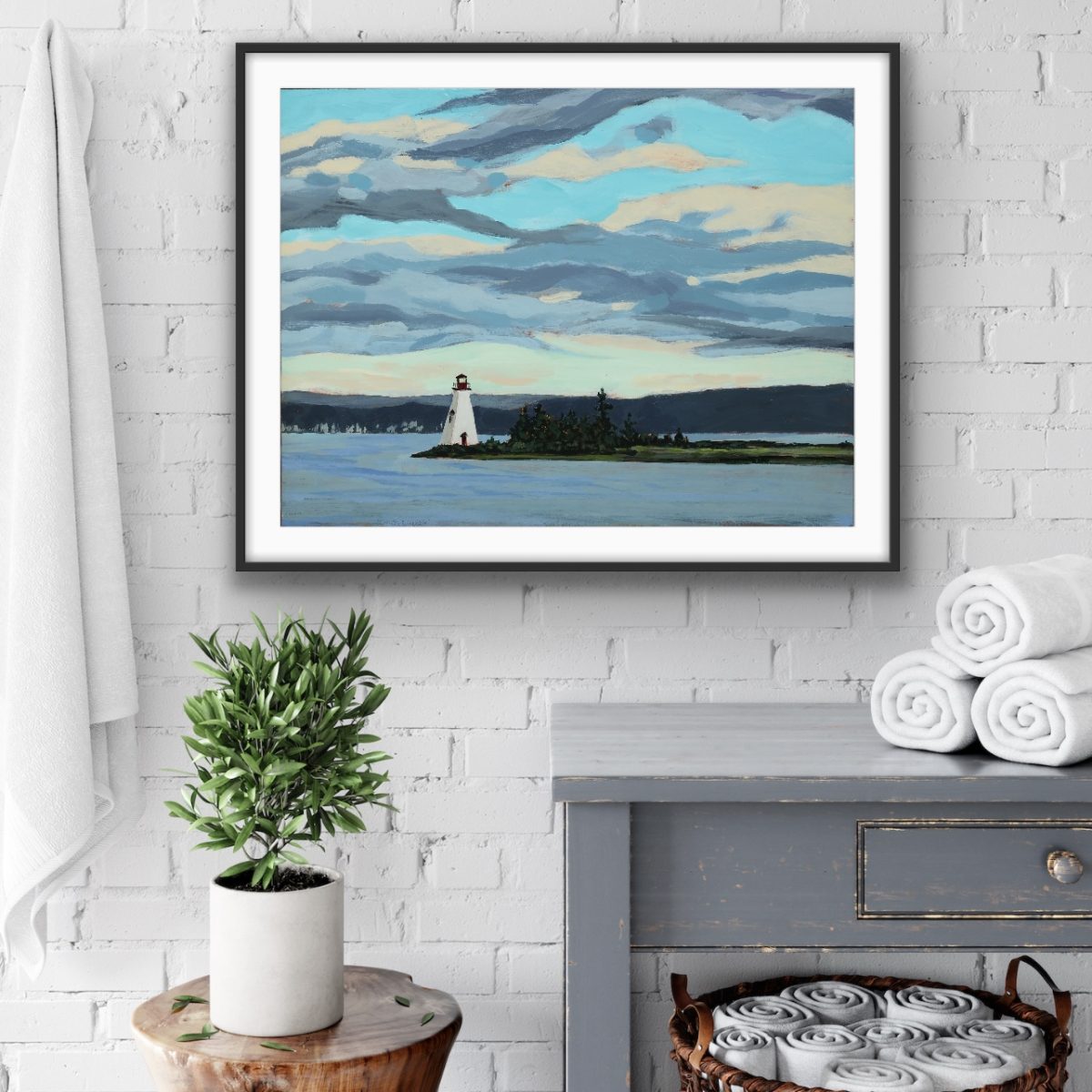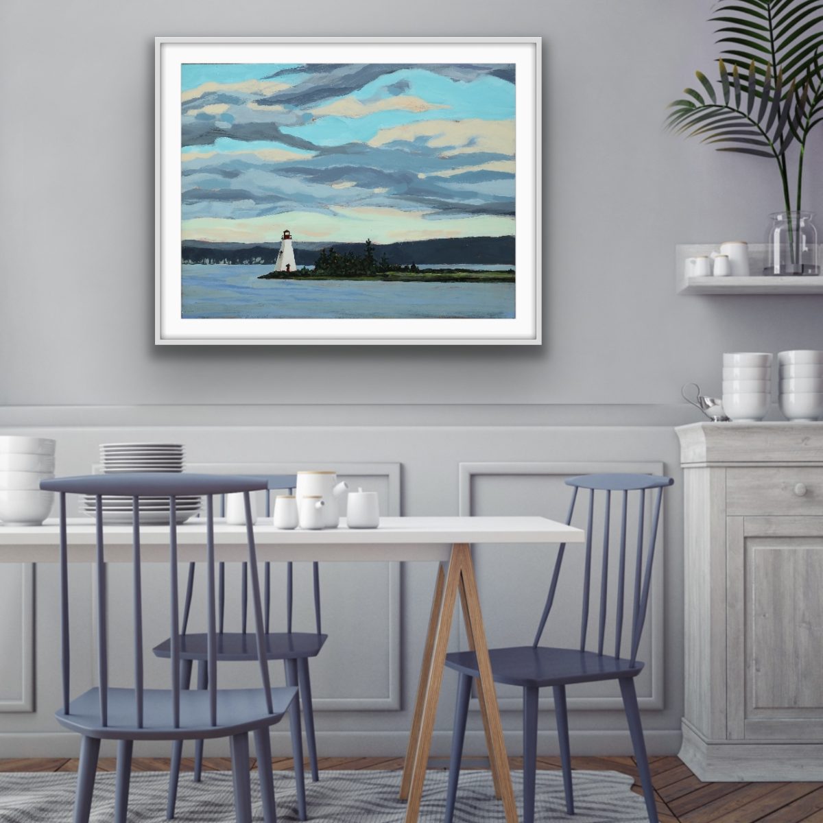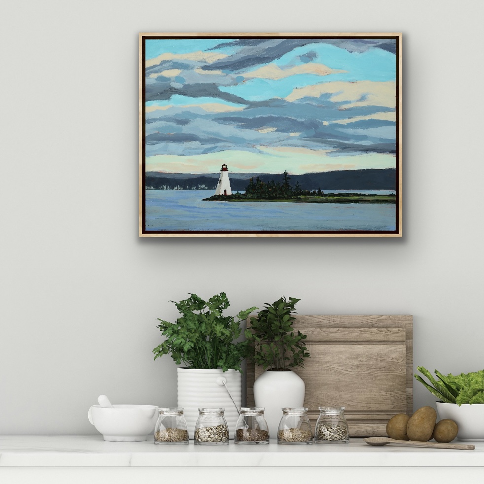 Summer in Baddeck is a 9″x12″x 1/8″ acrylic painting on masonite board. Over looking the famous Bras d’Or Lakes on Cape Breton Island, this iconic image has been photographed and painted many times.